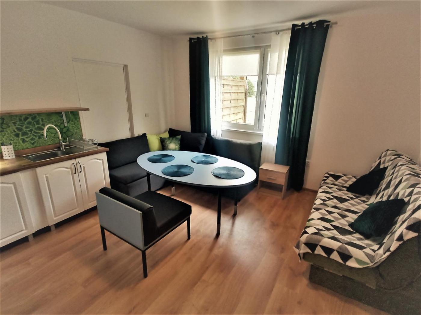 Apartament z 1 sypialnią. Boasting a private entrance, this apartment includes 1 living room, 1 separate bedroom and 1 bathroom with a shower and a hairdryer. Guests will find a stovetop, a refrigerator, kitchenware and a microwave in the well-fitted kitchenette. The apartment also features a barbecue. Featuring a terrace with garden views, this apartment also offers a seating area and a flat-screen TV. The unit has 4 beds. Apartament - 4 osobowy. Powierzchnia pokoju ok.: 36 mkw.