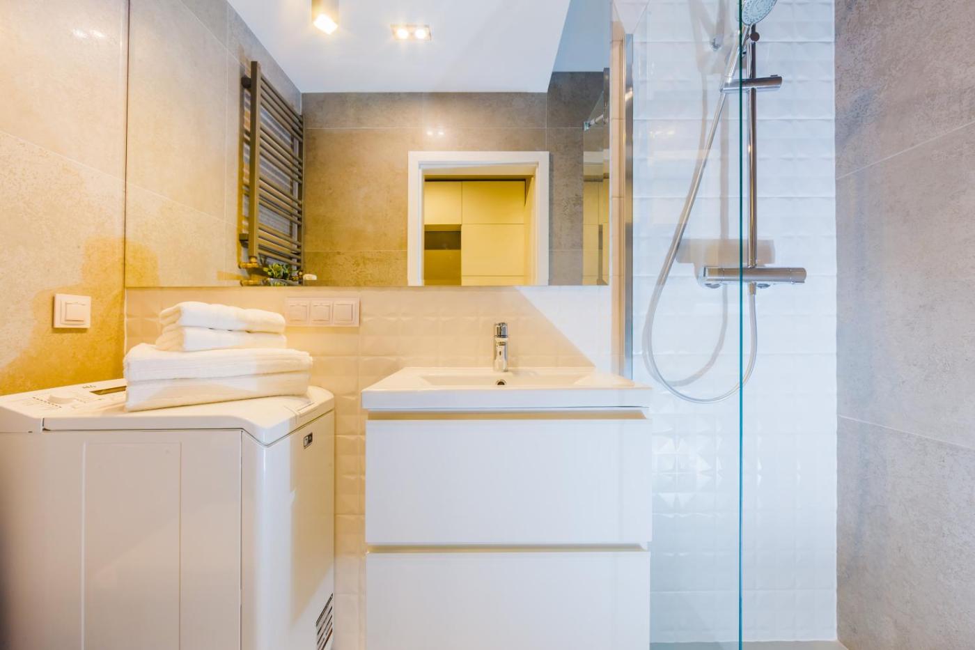 Apartament. The fully equipped kitchen features a stovetop, a refrigerator, a dishwasher and kitchenware. The air-conditioned apartment provides a flat-screen TV with cable channels, a washing machine, a seating area, a dining area as well as city views. The unit offers 2 beds. Apartament - 5 osobowy. Powierzchnia pokoju ok.: 35 mkw.