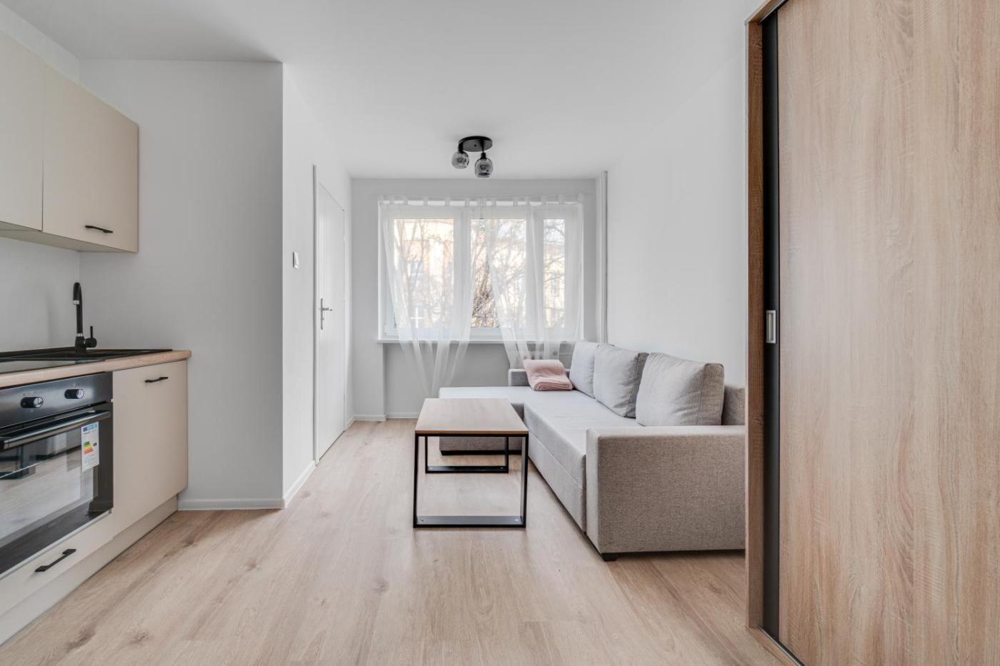 Apartament z 1 sypialnią. This apartment features 1 living room, 1 separate bedroom and 1 bathroom with a shower and a hairdryer. Guests can make meals in the kitchenette that has a stovetop, a refrigerator, kitchenware and an oven. The apartment features a flat-screen TV, a washing machine, a coffee machine, a wardrobe as well as city views. The unit has 2 beds. Apartament - 4 osobowy. Powierzchnia pokoju ok.: 25 mkw.